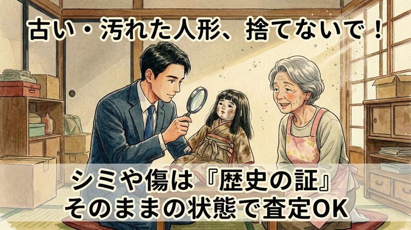 遺品整理や実家の片付けの際に、何十年も前の古い人形が出てくることは決して珍しくありません。しかし、その人形を目にした多くの人が「こんなに汚れていては売れないだろう」「誰も欲しがらないから、ゴミとして処分するしかない」と早合点し、諦めてしまっています。